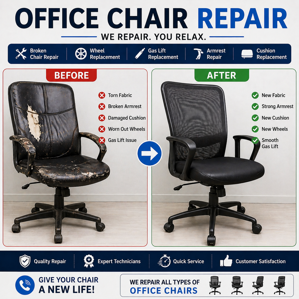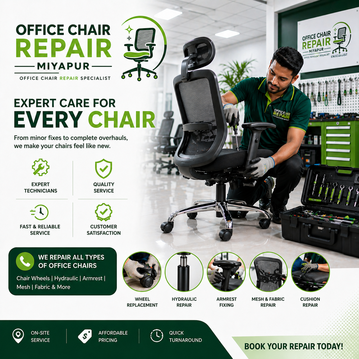 Welcome to Office Chair Repair Miyapur, your trusted expert for office chair repair services. We specialize in repairing all types of office chairs including revolving chairs, hydraulic chairs, executive chairs, and ergonomic chairs.